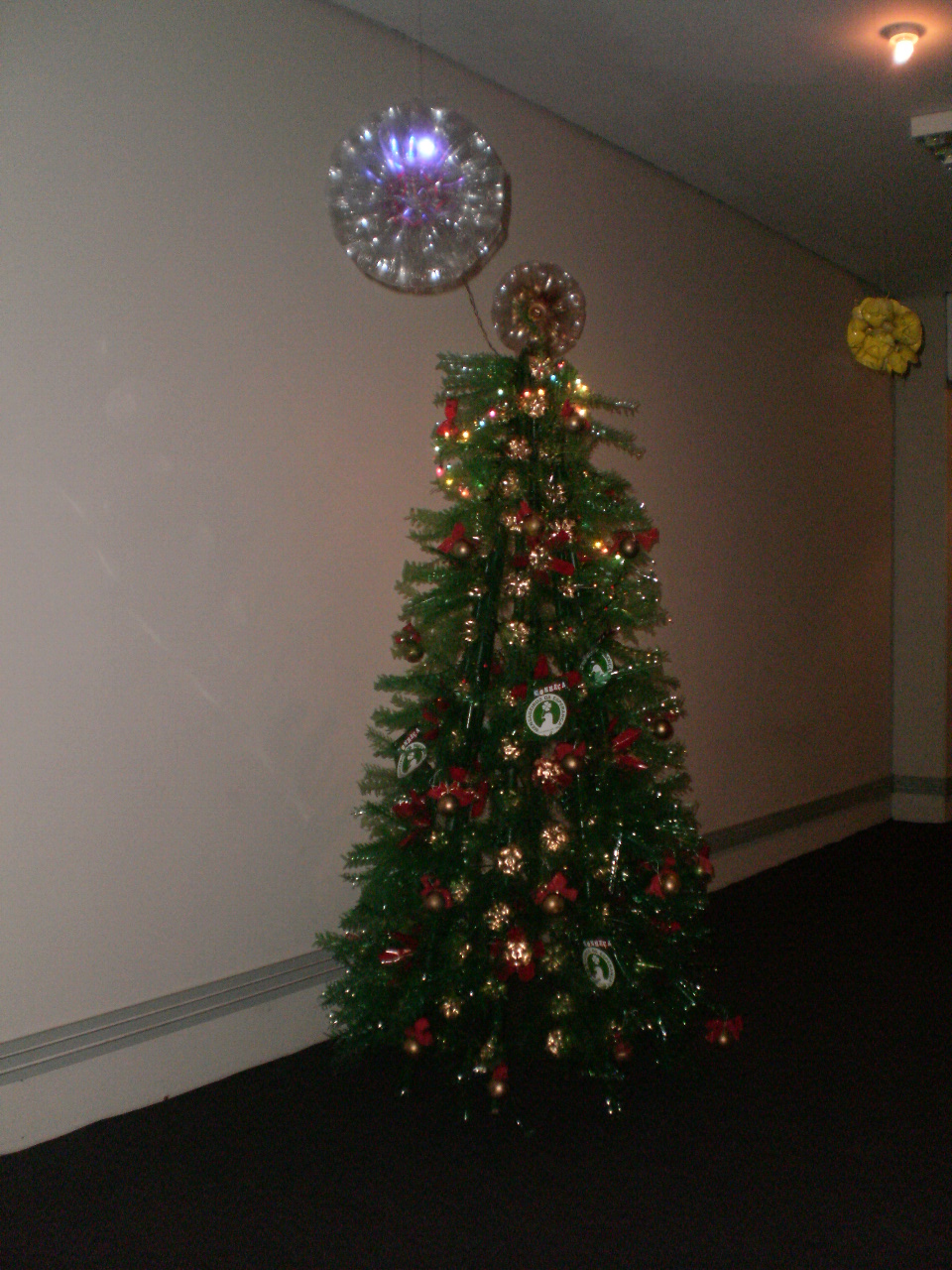 | A esquerda da foto, árvore de natal de 3mts de altura onde foram usadas mais de 400 garrafas pet. |